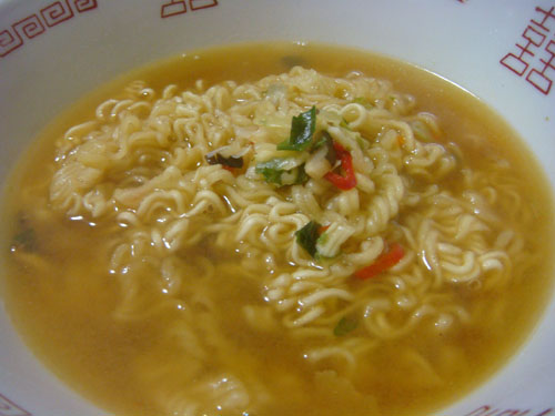 普段とちょっと違う味を楽しめて(麺がスープの味を吸ってる程度ですが)、なかなか美味しいですよ。^^