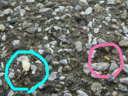 それぞれ別の種類のアリのようで(大きさが違う)、