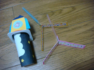 ストローと牛乳パックで作った竹とんぼ×2