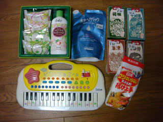 子供向けのアイテム(服・玩具)の他、日用品も多数ありました。