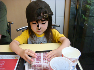 マクドナルドで雨宿りがてら昼食です。