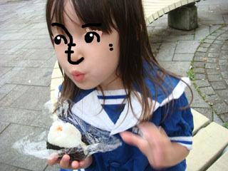 猫舌のヨーコは必死で息を吹きかけ、