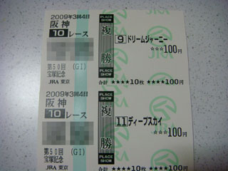 昨日、東京競馬場に行った時、今日出走の宝塚記念の馬券を購入していたので。
