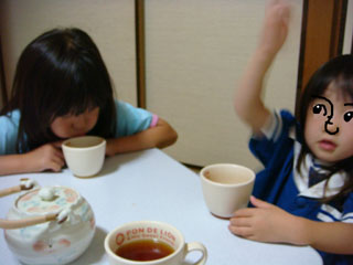 チーコは手で紅茶を仰いでいます。(効果無さそうだけどw)