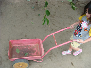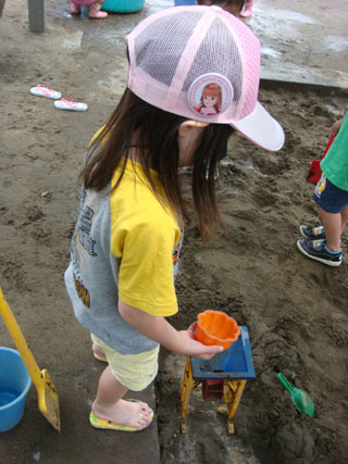 この幼稚園は、砂場道具が充実しています。^^