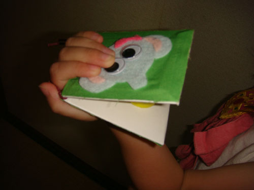 フェルトの可愛いゾウさんが貼り付けてあります。^^