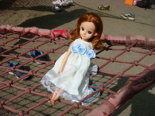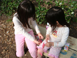 まずは、お友達のところへリカちゃんの服を持って行きました。