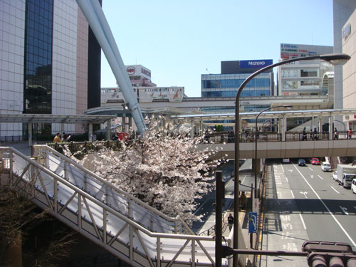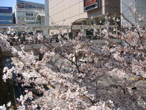 北口を出てすぐに、桜が見えました。