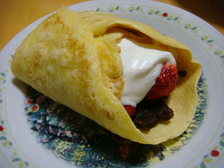 写真は、あんこ・いちご・低脂肪ホイップのクレープ。