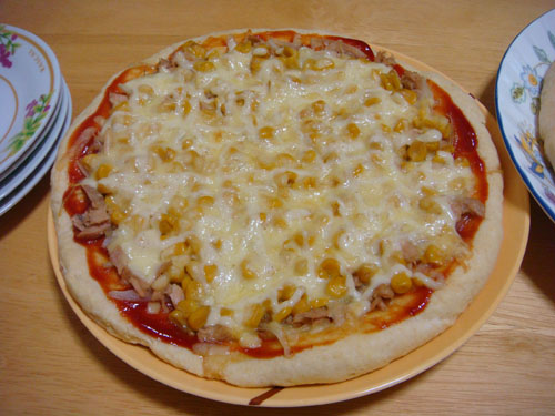 コーン・ツナ・たまねぎ。マヨネーズのピザです。^^