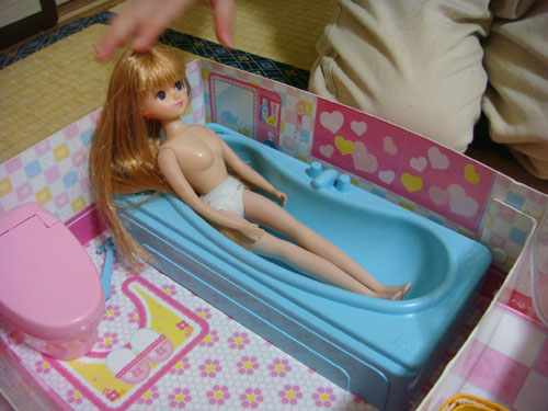 リカちゃん、入浴中。