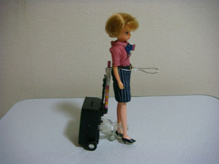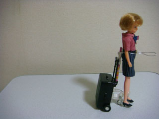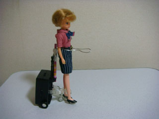 タイヤで前進させて、リカちゃんが歩いて見える、という仕掛け。