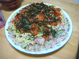 夕食にはちらし寿司。