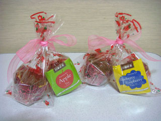 (マフィンは、ラップに包んでから袋に入れています。)