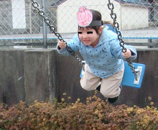 チーコは、園庭のブランコに乗って、大満足!