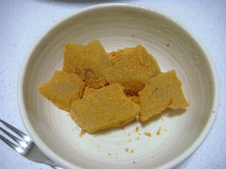 棚を見てみたら、半分残ったわらび餅の粉がありました。
