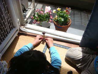 子供は長く伸びた紐をちょうちょ結びにできず、