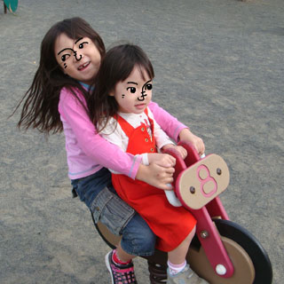 お友達と別れた後、ヨーコが通っていた幼稚園が近いので、この格好のまま幼稚園に行きました。