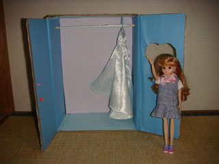 上の写真のリカちゃんは、玩具のブロックで立たせてスカートで隠していますw