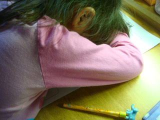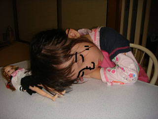 宿題をしながら寝てしまったヨーコ。