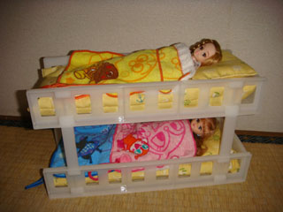 もう1体リカちゃんが増えたら、ベッドの下の段に2体並んで寝てもらいます。