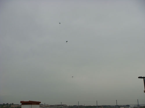 パラシュートでの降下演習の真っ最中でした。