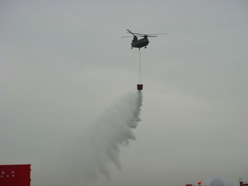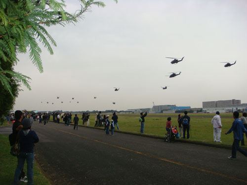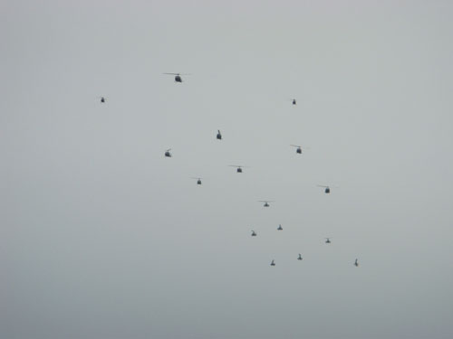 ヘリコプターが編成を組んでやってきました。