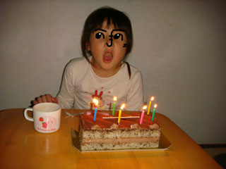 ろうそくを7本立てて、歌を歌ってお祝いです。