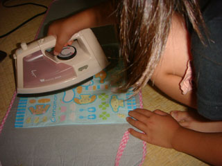 現在、お友達の分は襟ぐりと袖ぐりを縫ったところです。