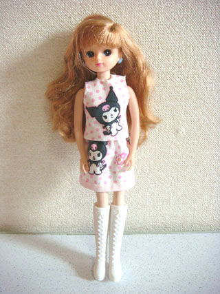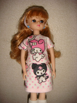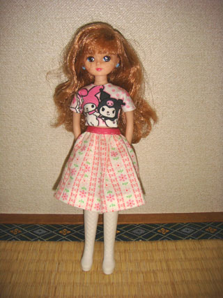 未明に、リカちゃん用の半そでTシャツの型紙をネットで発見し、プリントアウトしました。