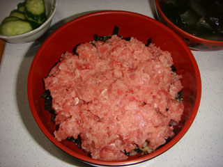 刻み海苔&マグロの剥き身を乗せて、