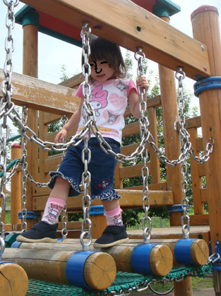 今日は一人で丸太の上を上手に歩くことができました。^^