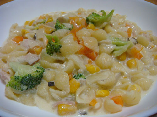 ベーコン・にんじん・たまねぎ・生しいたけ・コーン(缶詰)・ブロッコリー・牛乳・クリームチーズ