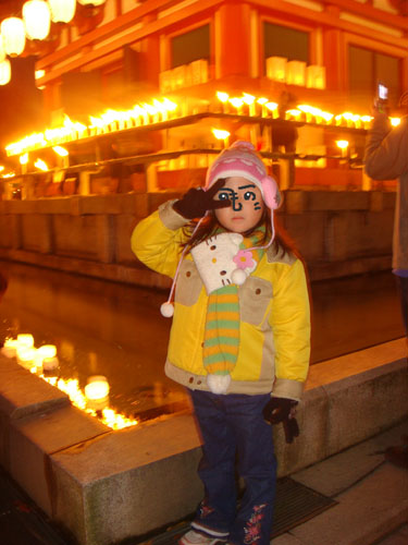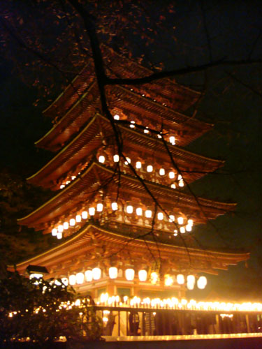 五重塔のある広場の周辺には、ろうそくが並べられていました。