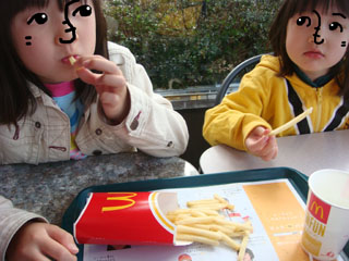 ヨーコが帰宅後、4人そろって3時のおやつです。