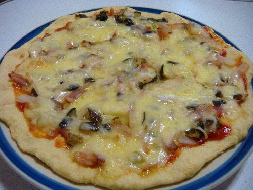 帰宅後、早速ピザ生地の下焼きからスタートです。