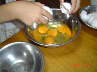 そこで、ごはんが炊きあがった後に、卵を割るのをお願いしました。