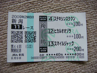 縁日プレイ券を目当てに、関屋記念の馬券を購入していたので。